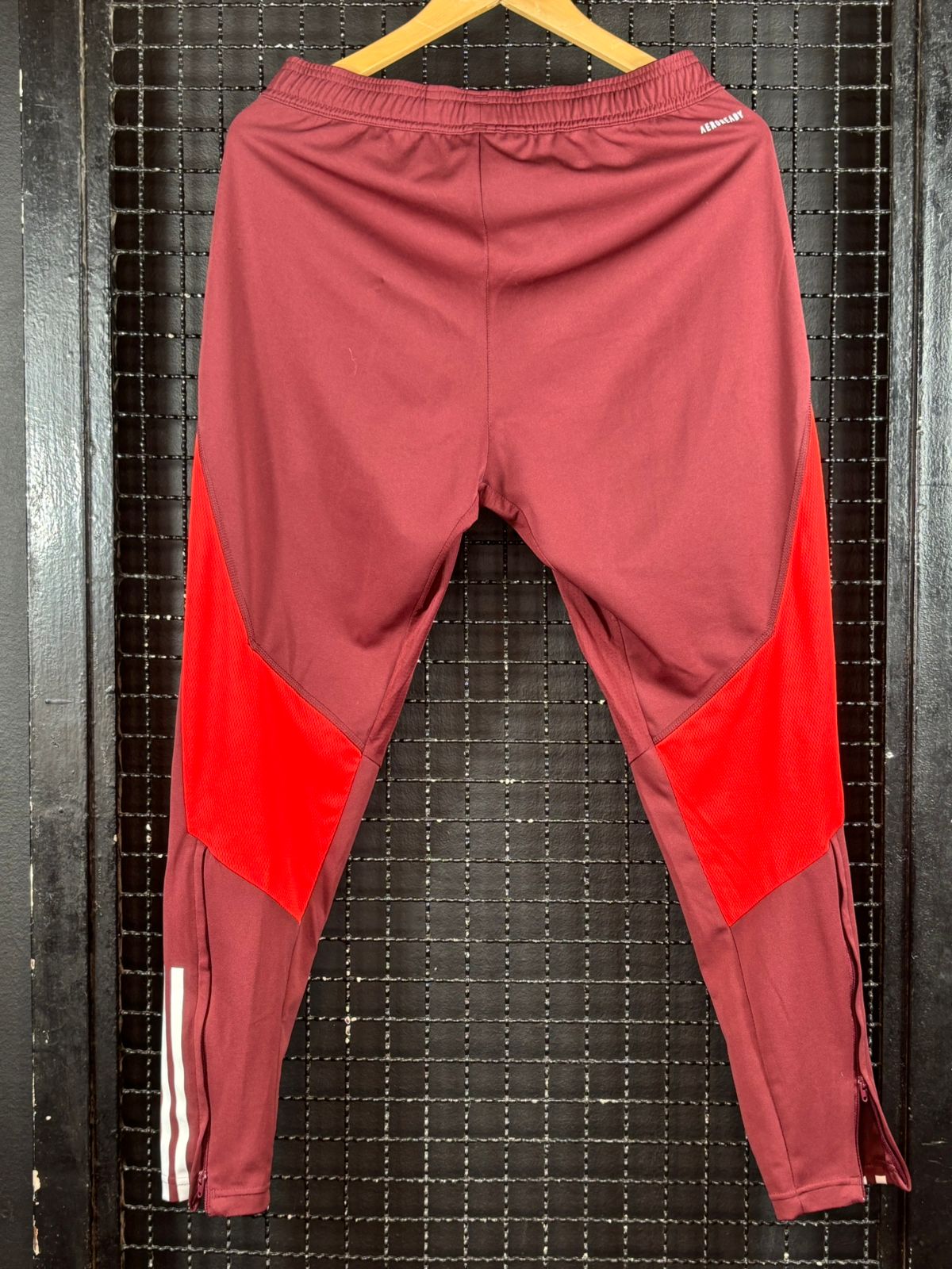 Calça em perfeito estado com dois bolsos com zíper, tamanho M, medidas 39×95 cm.