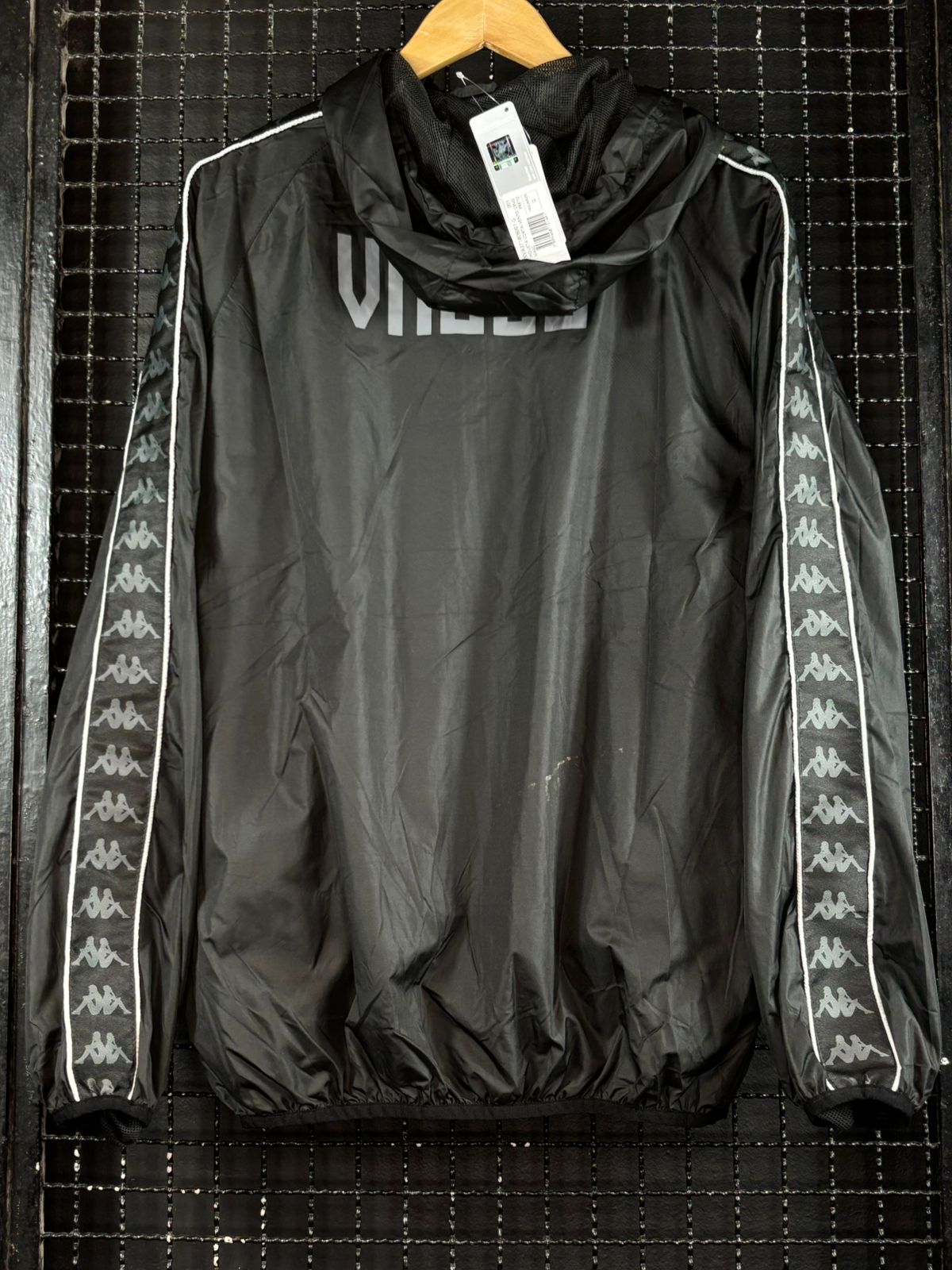 Corta-vento novo na etiqueta com dois bolsos com zíper, tamanho G, medidas 61×75 cm.