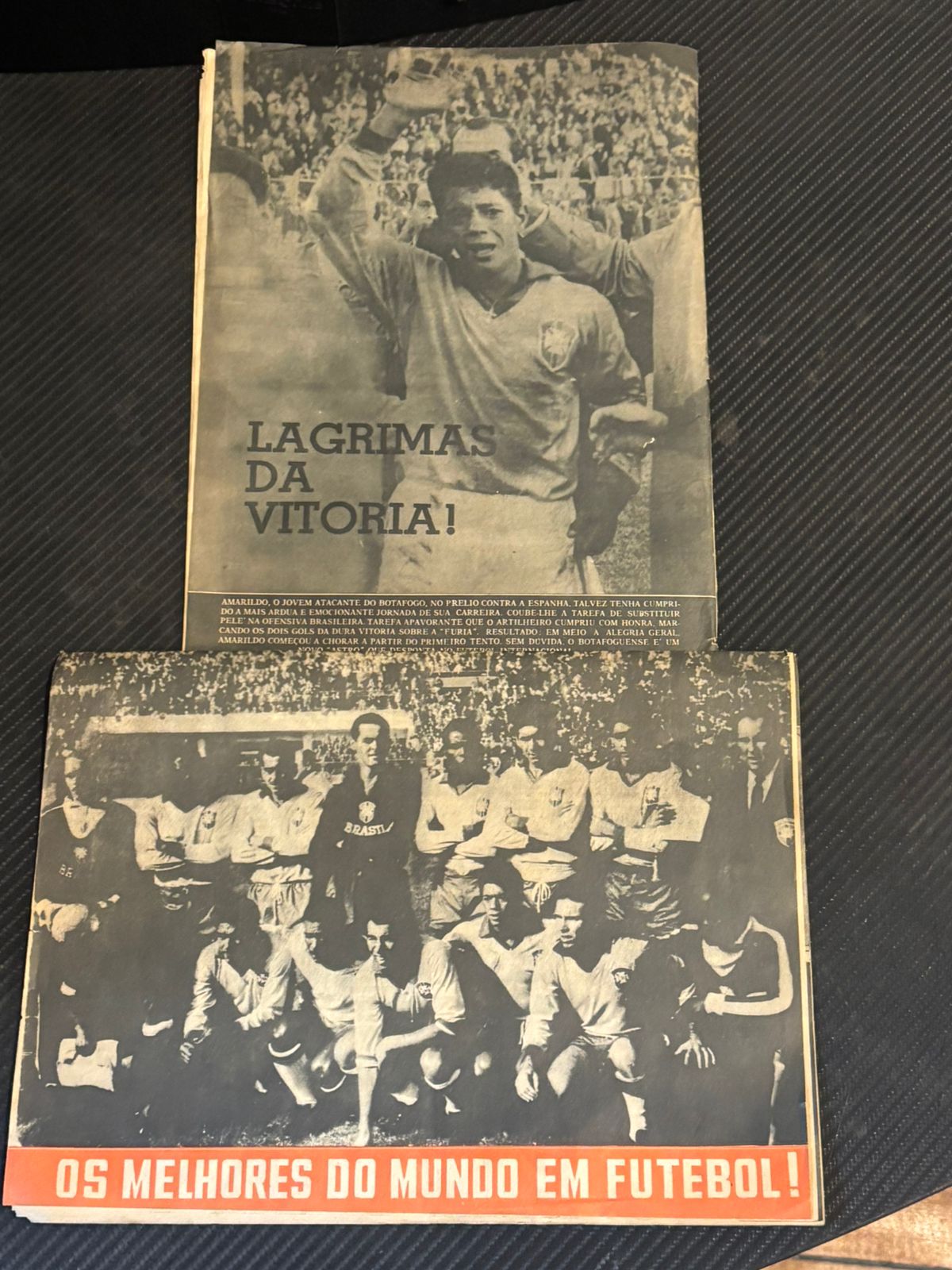 Revistas datadas de 14 e 21 de junho de 1962, com a cobertura completa da semifinal e final da Copa do Mundo de 1962 conquistada pela seleção. Cada revista contém 20 páginas.
